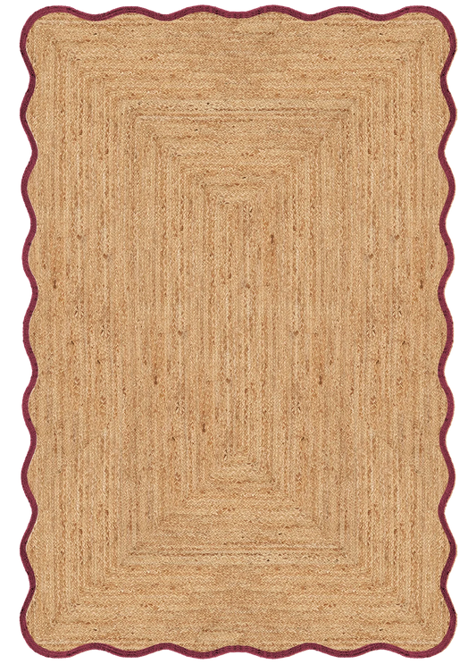 Vloerkleed Layered Scallop Jute Burgundy