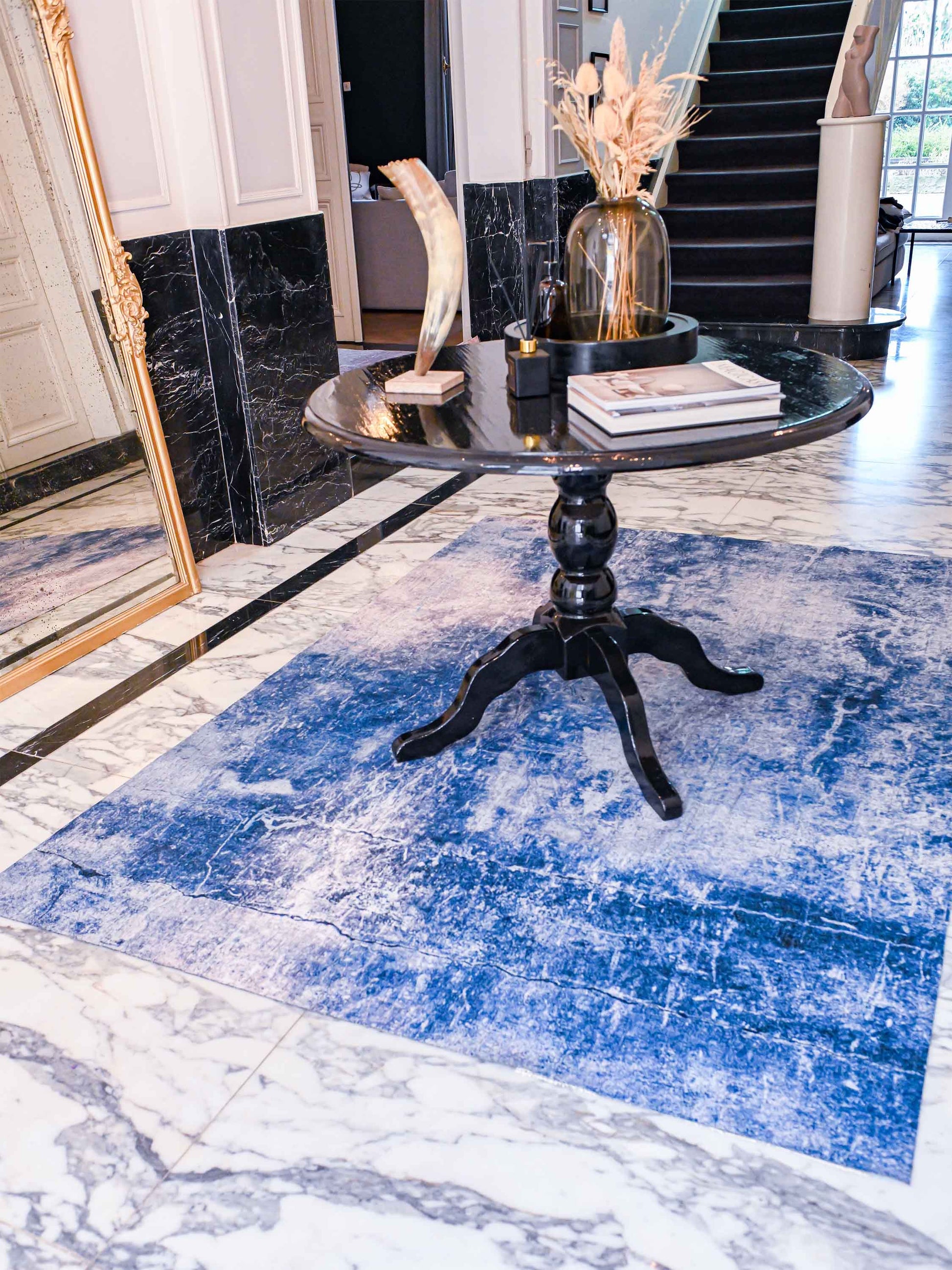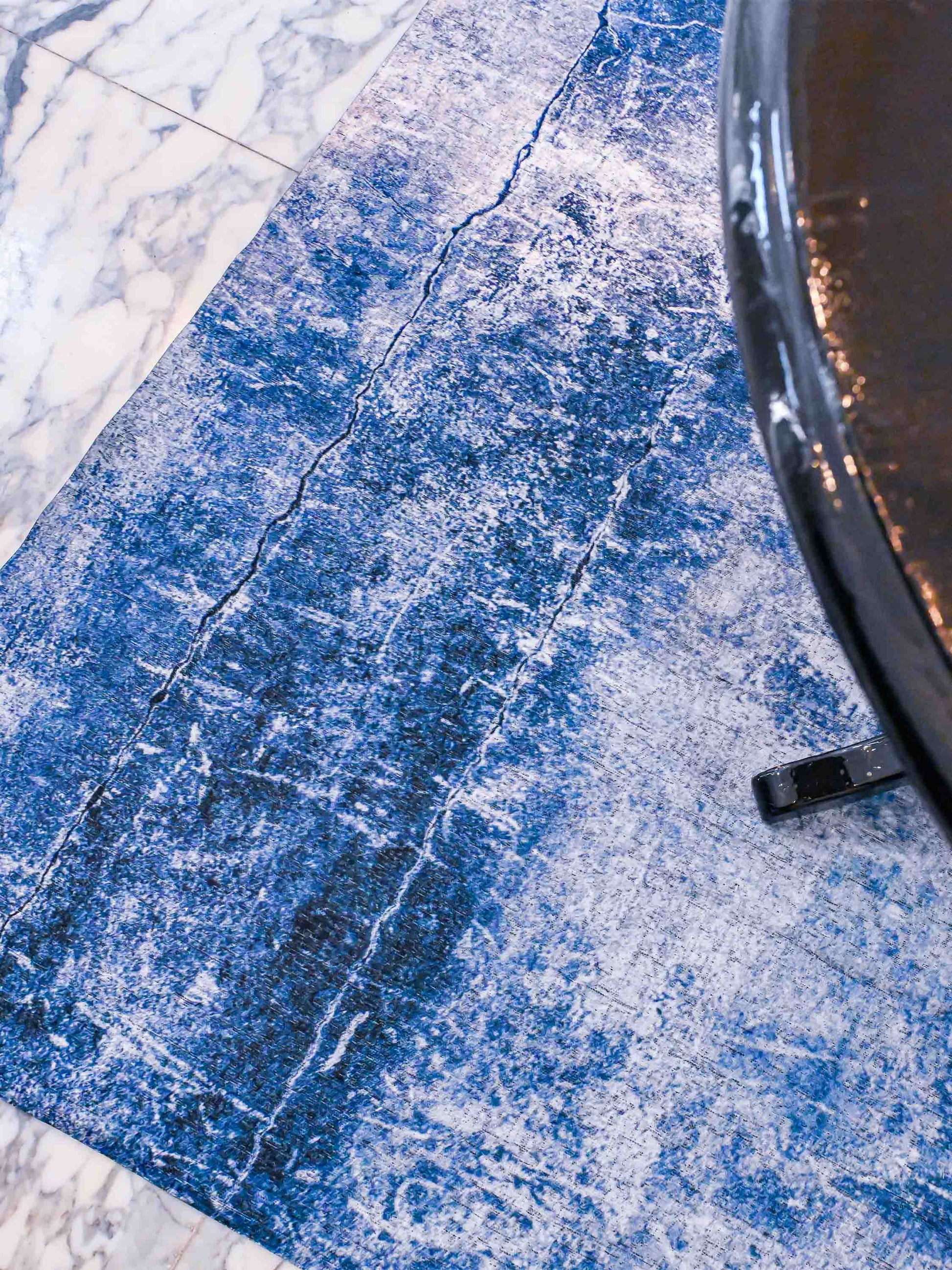 Het vloerkleed Chaos Yam Blue van Jackie and the Fish is niet alleen mooi, maar ook nog eens bijzonder praktisch. Het kleed is namelijk flinterdun. Dat betekent bijvoorbeeld dat er geen putten in ontstaan door stoelen en tafels. Erg handig op kantoor en onder de eettafel. Uitglijden gebeurt niet snel dankzij het meegeleverde antislipkleed. Tijdens de schoonmaak of een verhuizing vouw je je Jackie and the Fish gewoon op tot een handzaam pakketje. Zijn er vlekken ontstaan? Dan kan dit dunne vloerkleed, hup, in de wasmachine. Een bijkomend voordeel van zo een lichtgewicht vloerkleed is dat hij ook prima dienst doet als wandkleed. Zo kun je extra genieten van het unieke design.